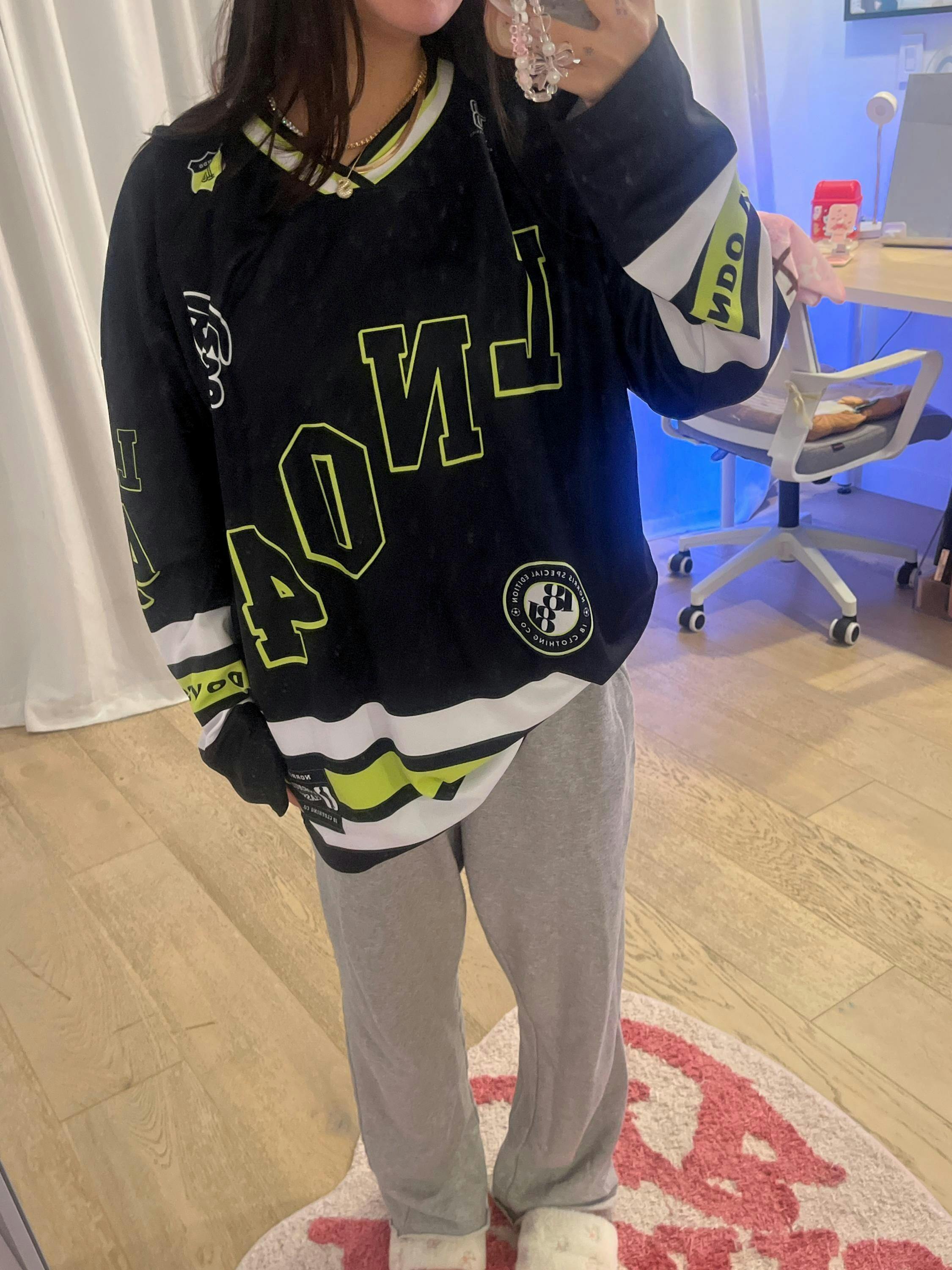 The LN04 Neon Green hockey jersey. This is a limited release, so get in quick before it goes!. This oversized hockey jersey is breathable and made to be baggy, perfect to wear in summer or over a hoodie!