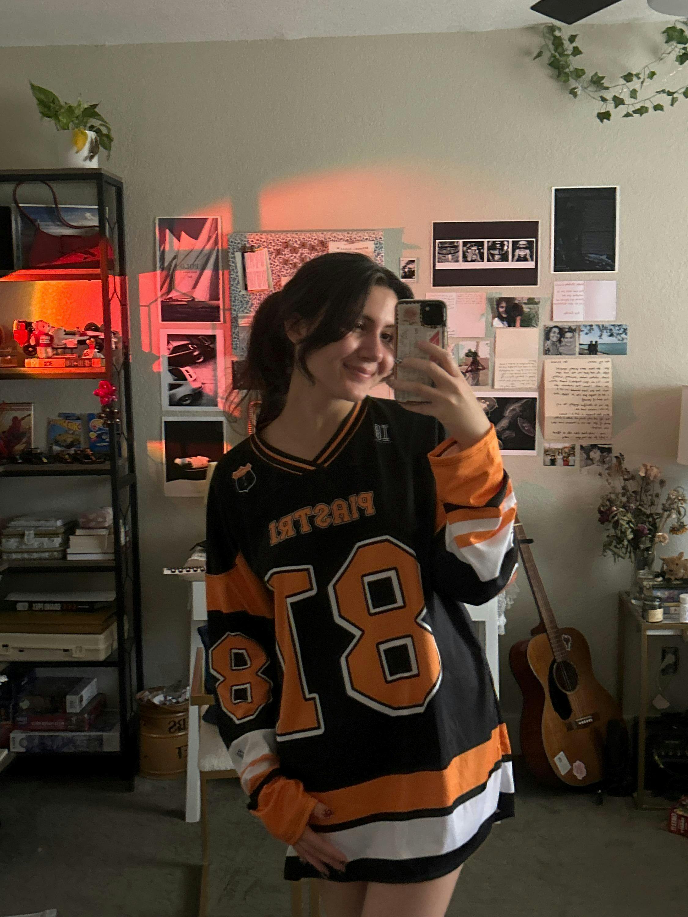 This oversized hockey jersey has light and breathable material, made to be baggy, perfect to wear in summer or over a hoodie!