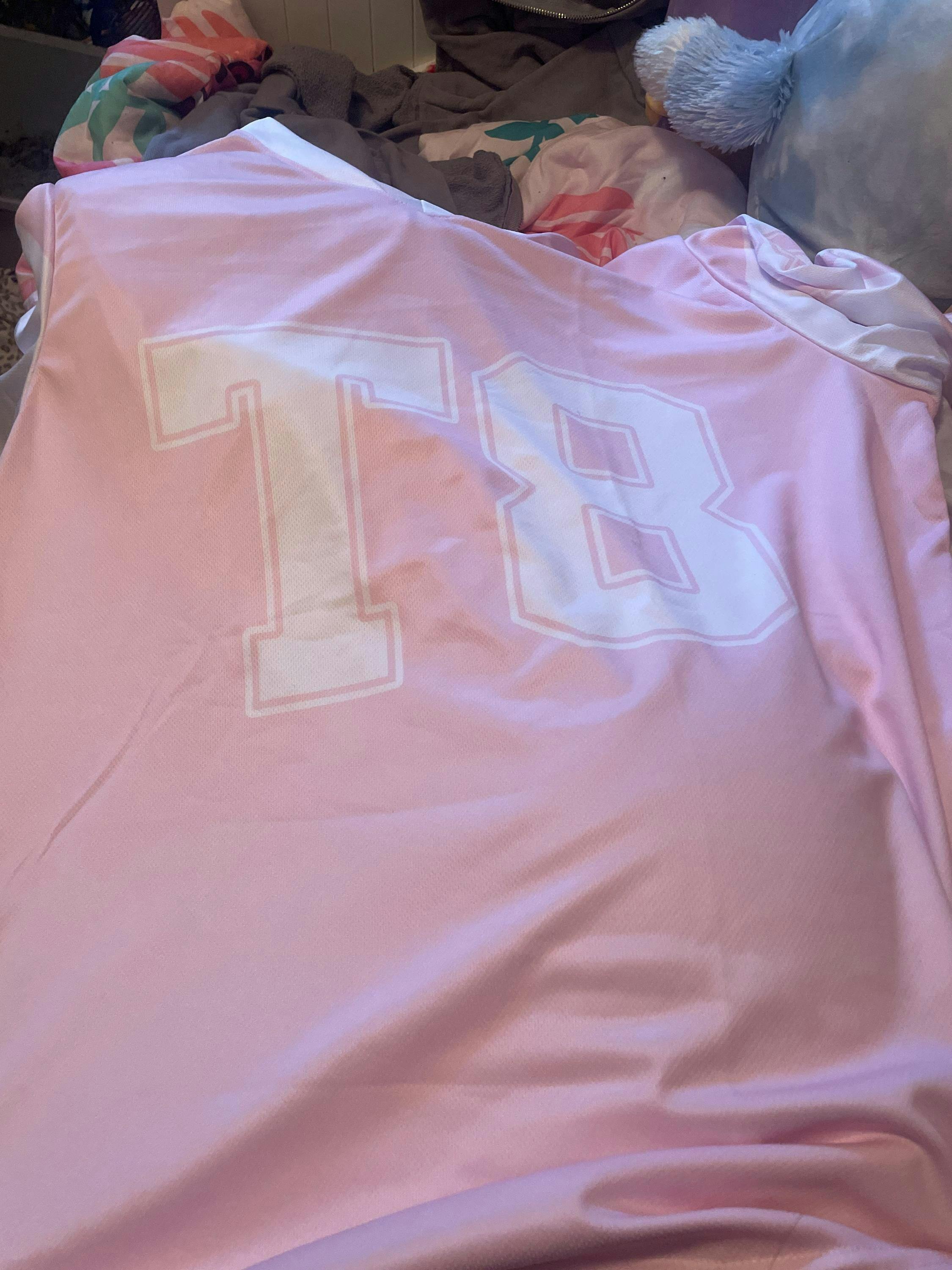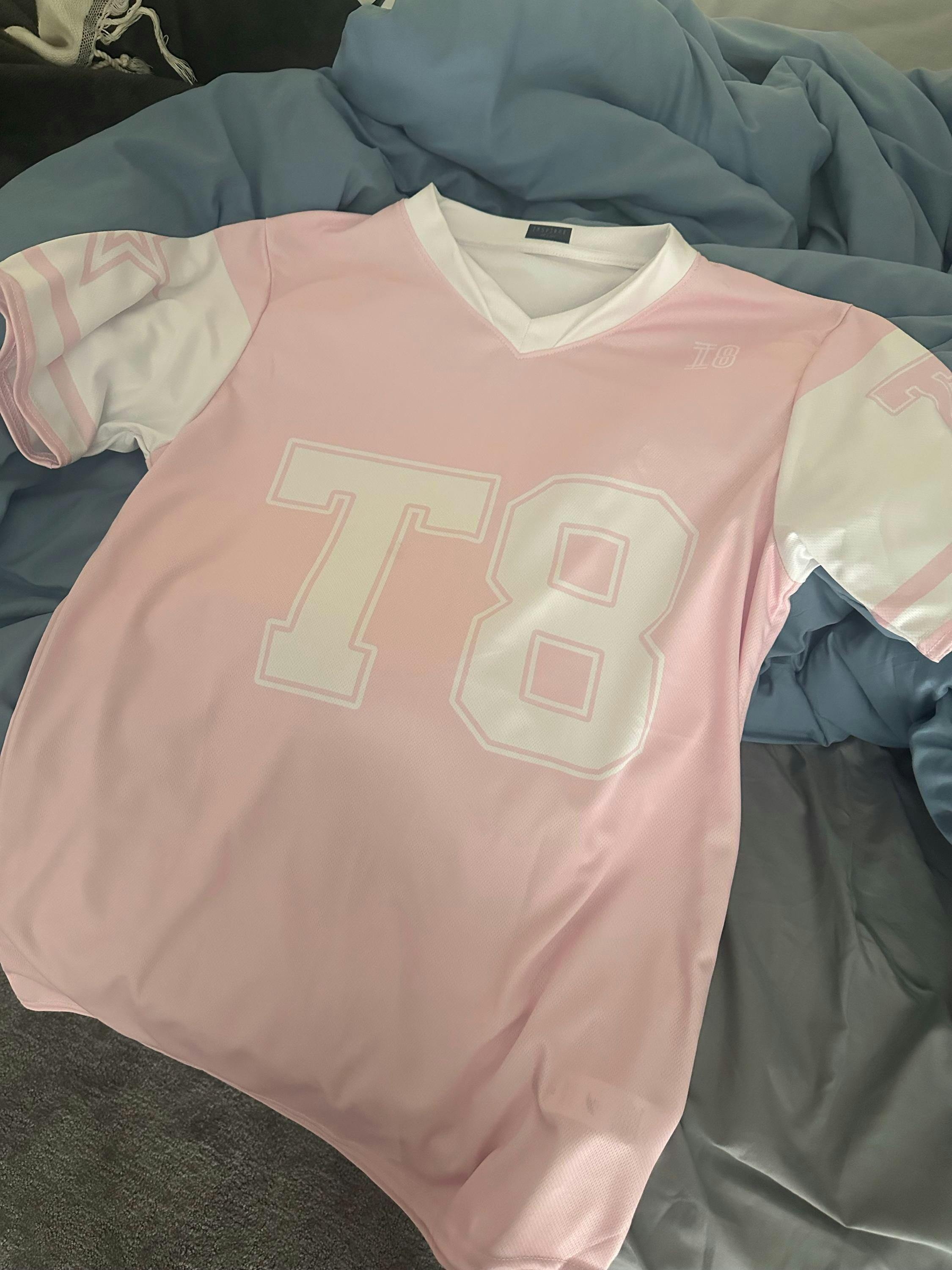 LIMITED EDITION ALERT! ONLY 30 left! Get in quick before they go! The T8 pink/white football jersey. Wear it at home or live at the concert!